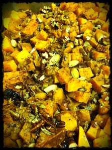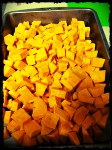 Our first obstacle was getting fresh ground beef. The one we had didn’t quite smell right. So Ernie took off to Whole Foods (across town) to get us some fresh grass fed beef and some GINORMOUS tomatoes. Dinner was going to be simple spaghetti squash with a meat pasta sauce. Easy enough. It was very delicious. After a tiny little break I got to the real cooking – my first attempts at a Paleo Thanksgiving. We are going to see family out of town and I know they will have an abundant feast, but I wanted to bring some items that I know are best for me.
