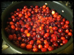 In the meantime I prepared Cranberry Sauce which came out quite tart! But I guess that’s expected when there is no sugar added to help sweeten the deal. It was good nonetheless and the only thing I tried tonight!