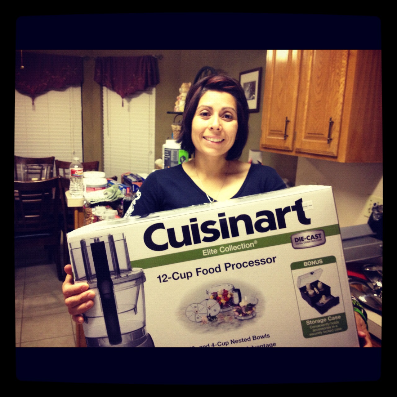So onto ME cause what’s better than talking about Me? Hahahah, I’m not that self centered. Just on the verge. Hell I started a blog to talk about me, maybe I am that interested in me. Anyways. Moving on! I got my 2nd EARLY Christmas present last night and ooooo weeeeee it’s a good one! A Cuisinart 12 cup Food Processor! Ya Buddy! It comes with a 4 cup bowl too! I’ve been using this itty bitty chopper/grinder to get my stuff chopped and cut up with and it was good because it helped but it’s so small I could only do a little bit at a time. I have a family of 5 to cook for and all boys so you can only imagine how little it helped! NOW I have the deluxe model that will process ANYTHING and in large amounts! It can’t get any better than that 🙂 But wait there’s MORE … now Ernie says he’ll be able to help me with dinner! WTH? That’s what the processor is for…to help me expedite the chopping and the mincing and the shredding of foods. And NOW he wants to help! I was like sooooo helping before was not an option? And now you’re ready to jump on board?!? Hahahha. Seriously…He’s great when it comes to the grill, so this isn’t Ernie bashing day. He did get me my new prize after all but I find it rather funny that he now wants to help with dinner. MEN!?!
