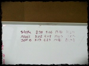 And then the RUNNING. I did not want to run at all. 600 meters is far! Hahah, well not really but times 4 it is and I don’t like the running. I have not other choice but to suck it up and run. I did get 3 minute rests between which were wonderful and needed and I just re-iterate how much of a whiny baby I really am. I surprised myself with my times. My first run was 2:38. And what do ya know I got better with each run! 2:28, 2:34 and 2:25. Like the post title says I’m NO TRACK STAR at all but I know I used to not be able to run 400m in these times much less 600m. So YES I was feeling good! I’m getting faster and I’m not even trying π I know I’m trying in overall fitness but I am sure not trying in the running dept. Not intentionally. It’s amazing. Before you know it I’ll have a sub 8 min mile and I may learn to enjoy running….hahah well maybe I’ll get the sub 8 but I don’t think I’ll ever ENJOY running just to run.