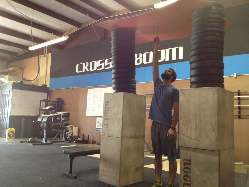 Coach Grant measuring the "ROOF". We got hell from CrossFitters after a pic of our roof made it to the CrossFit Games facebook page. But we also got a lot of kudos. I assure you it was safe and there weren't any concerns on whether it was or not!