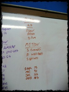 Moving onto the MetCon: 5 rounds of 10 wall balls and 5 windsprints. Can we say FUN? It’s better than sled pulls! And I’m getting better at wall balls! Who would have thunk it!! I did them all consecutively without fail. This is truly amazing. Even though you know how much I despise wall balls you can’t possibly imagine how poorly I am at executing them. It’s ugly. But this morning I can be proud of my Wall Balls! The sprints well were just sprints. We got a rest because we split up into 2 groups so after I went there was another duo which gave me a quick break to catch my breath. We didn’t go for time today which was a mental relief at first and then I was struggling with the need to know my time! There was no time. What am I supposed to do? I guess nothing but it feels weird not having a “score” of some sorts. I know … get over it … blah blah blah and the world will keep on spinning, hehe. It’s my thoughts here, but I feel the judgments.