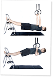 Skill/Strength was RING ROWS, 3 sets of max reps. Key to a successful rep is having your hands touch your chest. This is not easy. My max reps were weak! In the picture below you will notice this guy has his feet on a step ladder thing. We just had our feet fully extended but on the ground. If you couldn’t execute the movement with your legs straight then you brought your feet under you.