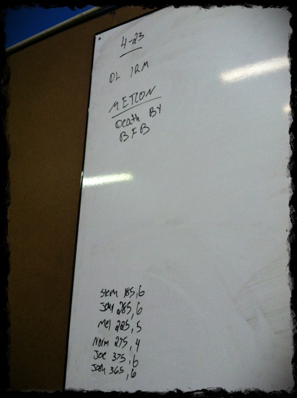So onto miserable Monday! I was actually excited about this morning at the BOOM box. It was 1RM on Dead lift and last week I went 6 reps at my 1RM of 185. Surely I have a PR in me for DEAD LIFT today, right?!? WRONG 😦 I couldn’t freaking lift shit today. I was so pissed at myself. I know it’s in me. I just don’t know where. This has really got me down today. It spread like wildfire internally, I lost my shit on the kids this morning, I was full of anger all the way in to work, OVERALL MOOD = SUCKY! All cause one failed lift! I know it’s dumb. Really dumb I know. I’m not looking for sympathy here, just looking to rant. I think it’s just a culmination of life events and this one little thing that I surely should have control over I couldn’t manage to CONTROL! Ya I know I have issues. It is what it is. I’ll get over it and hopefully push through the next time around. My head is full of garbage. I need to clear it up. I will. SOON I HOPE!