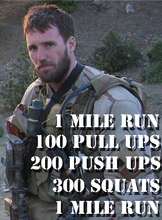 This workout was one of Mike’s favorites and he’d named it “Body Armor”. From here on it will be referred to as “Murph” in honor of the focused warrior and great American who wanted nothing more in life than to serve this great country and the beautiful people who make it what it is.