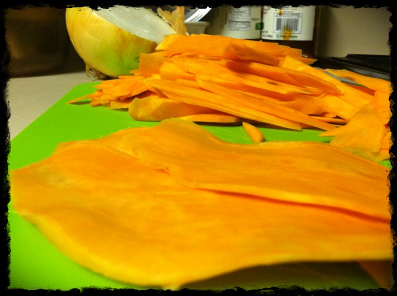 Sweet Potato Slices. After you slice them on the mandolin you cut them into thin strips aka NOODLES!