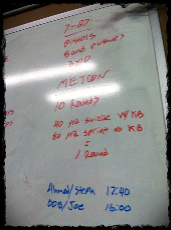 MetCon: 10 Rounds of TEAM 40yd KettleBell Suicides and 80yd sprint