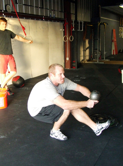 Good news! I finally did Pistols on the ground! I did however use a 15lb plate for counter balance and I could only do them on my right leg but hell ya I was happy. My left leg is sad and gimpy and I was having troubles on the box and on the ground. There’s a painful point in the bending of my knee that hurts like a mofo. Once my IT Band crosses the inflammed bursa sack I’m fine. But it’s the whole OH SHIT IT’S GONNA HURT point that I try to avoid. So Coach is having me do Pistols “backwards” if you will on my left leg. I start out sitting on a med ball. Left leg is flat on ground with heel against the ball and right leg is being held straight out. From there I attempt to stand up. This still hurts but not near as bad as squatting down. I managed to get reps in this way and with more mobility work, eating clean and what now I hope to remedy this whole IT Band issue!