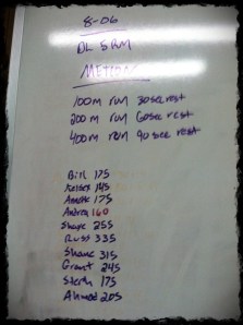 So the runs were 3 rounds of 100m sprint, rest 30 sec, 200m sprint, rest 60sec, 400m sprint, rest 90 sec! Really? 400m sprint after a 100 and 200. I don’t think so. It was more of a sprint, half sprint, jog and then holy shit I have to sprint uphill jog. In my head I was sprinting but my body was dragging. By my 3rd 200, I was winded and had a side stitch. But on my 3rd 400 Coach ran with me and I focused on not being a loser and ran it better than my first 2. It was sucky to say the least.