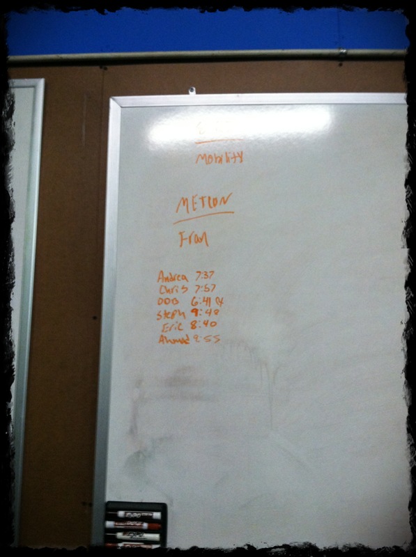 We had a straight up beat down at our Saturday Fun Day! It was a team WOD of 75 OHS (med ball), 400m run, 150 burpee box jumps, 400m run, 250 push ups, 400m runn, 300 sit ups. We had a good team strategy by breaking everything up into smaller sets per person. Our biggest struggle was the run. I am sad to say that I am one of the weaker links when it comes to running. We had to wait for the whole team to finish the run before we could start the next movements. Our team did really well and we pushed through to the end. We finished around 23 minutes and finished first! Woohooo. It was definitely work!