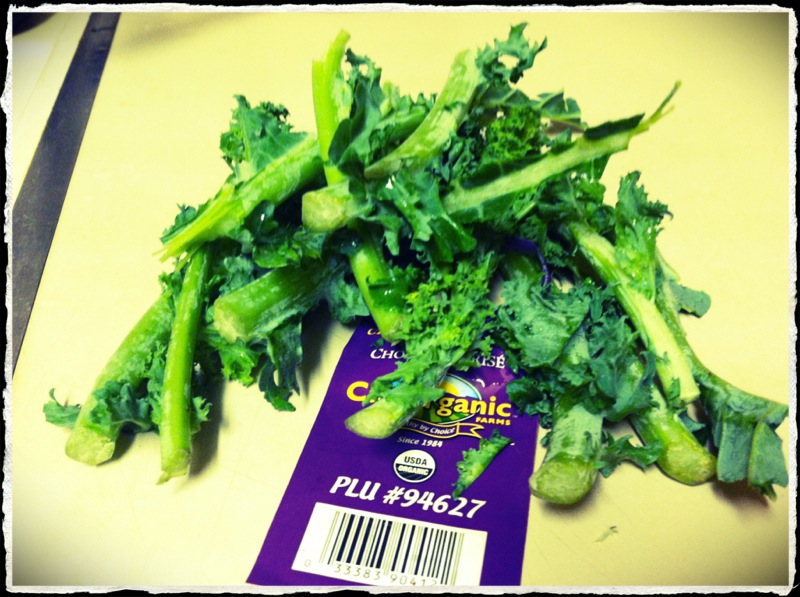 And as most of you no I’m not a CHEF and I’m surely no pro at all things Kale but I do cook it semi-regularly at home. There are different varieties but I usually use the plain ol’ green or red tipped versions. It’s the SUPERGREEN of greens. It’s all sorts of good for you. I’m not going to go into all the details of kale but check it out for yourself. Maybe start HERE and Google away. It’s almost daily that I get poked fun of by my co-workers for my clean eating. Throw out the word Kale and it’s a circus, then I realized that maybe they are just intimidated by it. So I got to thinking that maybe others are too. So I have a super quick recipe for you to use. This is good especially if you are on a time crunch. TIME is what I lack in all aspects of life so having a side dish to go with dinner that can cook super fast is IDEAL in my world!