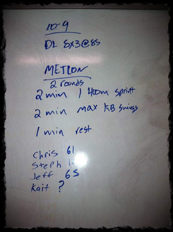 MetCon: 2 rounds of 2 minutes for 400m run 2 minutes KB swings, 1 minute rest