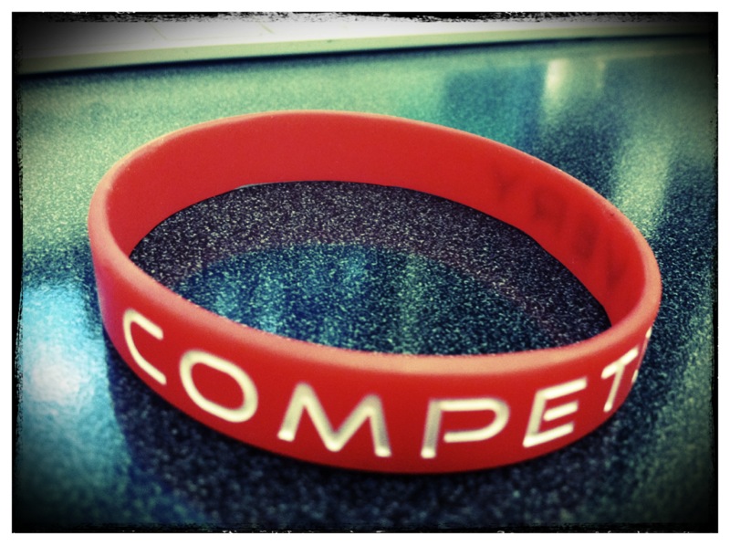 I’m sure the word “compete” is a turn off to a lot of people. It sounds like work. It sounds hard. Why do I want to compete everyday? Competing everyday doesn’t have to be tedious, it should be fun, it should be YOU vs. YOU, not you vs. that magazine ad, or the scale or you vs. anything but YOU! I look at my wristband and although I don’t always hit the mark in making myself better in my eyes, I do really have to reflect and tell myself that YES you are making yourself better. Yes you push your limits.