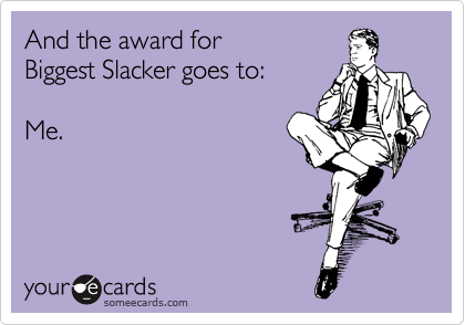 That’s it for this SLACKER Wednesday. Maybe I can hit up a kickboxing place at a nearby Boxing place tonight. They are fairly new in the area and I have been interested in checking it out! We’ll see. Other than that, I encourage you to get moving! Walk a little. Do some squats. Has anybody been making changes at all? I hope so! You know the drill BE AWESOME!