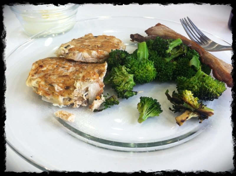 I was back to eating my Whole30 plan of attack today. Even ventured out a little bit and made some Salmon Cakes! And my oh my they were tasty. I was limited on cooking and prep time so they were basic and they still turned out fabulous! Added some of my HOMEMADE PALEO MAYO that was leftover from the deviled eggs and BOOM I had a lovely lunch! Seriously, I could get crafty with these Salmon Cakes and I mostly likely will start soon!