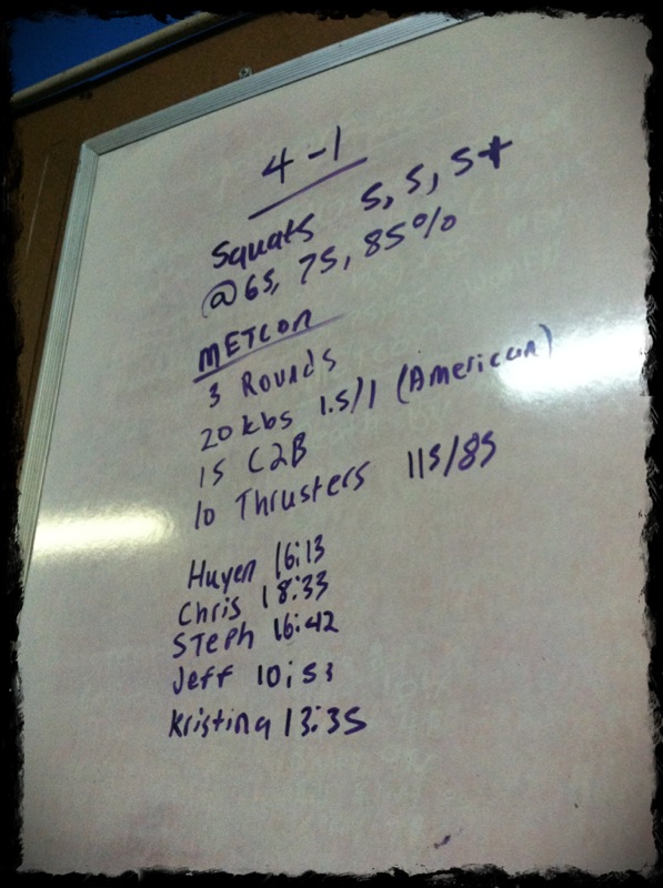 Ya, I’m glad I’m back too. I doubt I will ever QUIT CrossFit but I was just having a down week. After my whirlwind weekend and stepping up I feel much better in general.