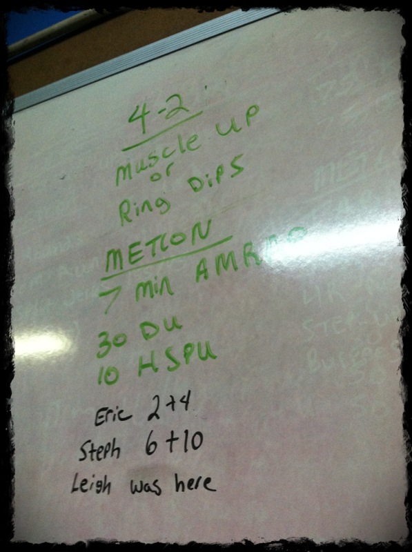 Ya, there’s no Muscle Up in my near future but hopefully in my future in general. I’m getting better at getting my hips working the movement right when we break it down to work on but there’s so much more work to be done. Focusing on ring dips is the goal for the moment. I can get up there and hold myself up there but the dipping part is where I have a mental panic. I can’t just drop without completely failing. I can’t lower myself down to pop back up. With a band, I’m AWESOME but that’s not that cool. I’m working on it. But it’s a SLOW work in progress.