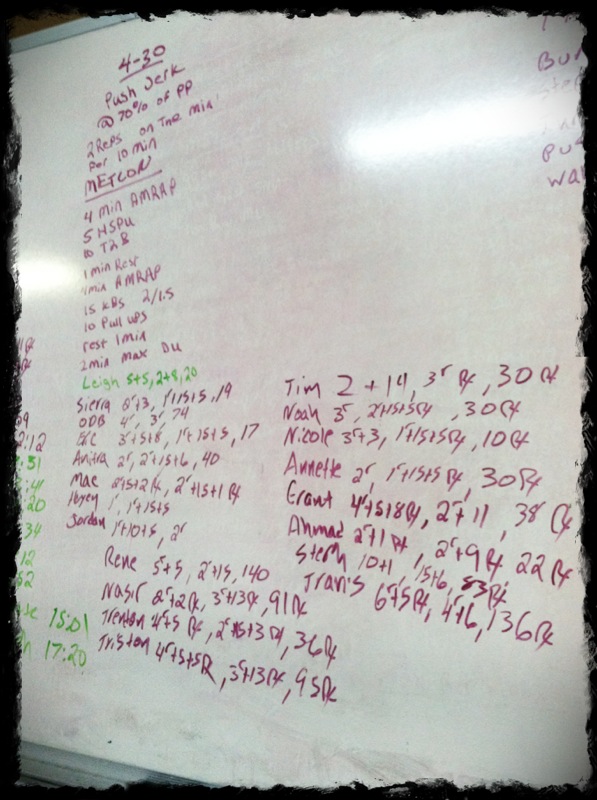 4/29/13 WOD. Big difference when I’m at the end of the day!