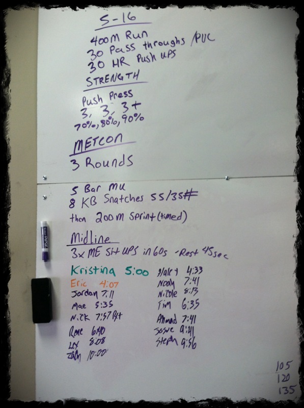 MetCon: 3 Rounds of Bar MU, 8 KB Snatches 55/35lbs
