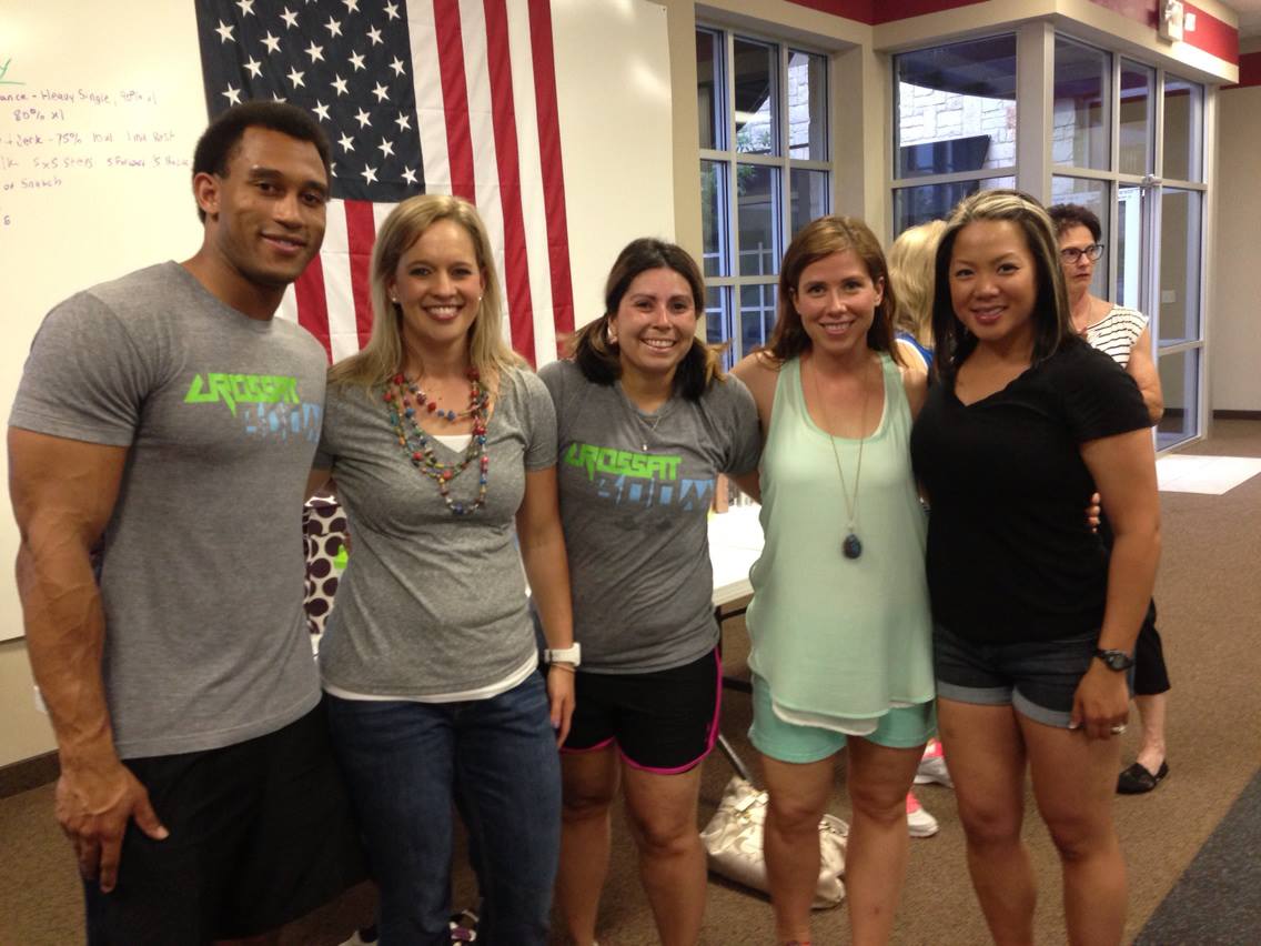 We had a nice little evening soiree Friday night where there was working out, hanging out, food and prizes. I showed up to workout. Little did I know there were few there that were up for the whole working out idea. I guess they all already showed up for a class earlier in the day but still. Fish out of water for me :/ It did weigh to my advantage though as we had a WOD to wonderful tickets to the Texas Rangers game. Primetime section/seating!