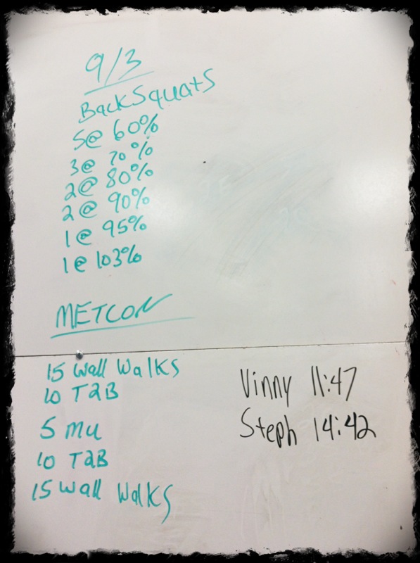Strength: Back Squats 5@60% 3@70% 2@80% 2@90% 1@95% 1@103%