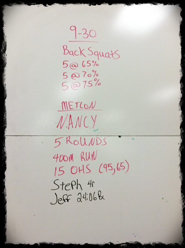 MetCon: Nancy – 5 rounds of 400M run and 15 Overhead Squats