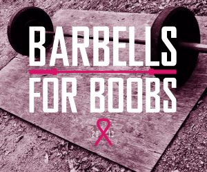Yippeee! I’ve exceeded my goal and I thank you all who have donated! THANK YOU! I’m at $250, so I’m asking to help me to get to $320. For every $80, one mammogram is proved to someone in need. I have 3 mammograms covered so let’s try and get 4 provided. BOOMS FOR BOOBS is tomorrow at 9 a.m. We’ll be doing GRACE, 30 Clean and Jerks for time. I will be working out in support, in honor and in memory of people that are battling or have battled breast cancer. Thanks in advance for your support and thank you again to those of you that have donated. Donate here to HELP SAVE BOOBIES!