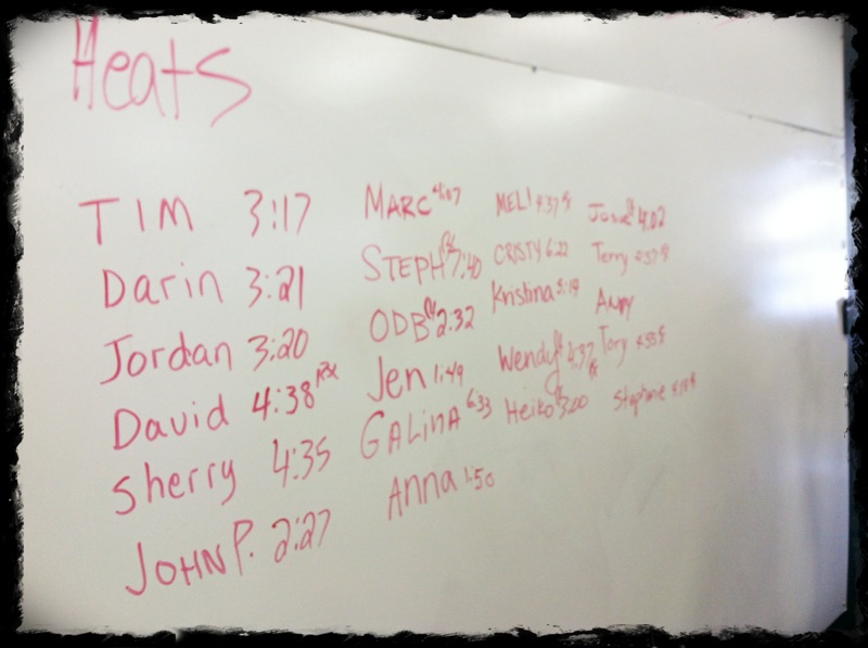 For those of you that had been following along, I have this wrist, palm, forearm tweak and it’s been a little painful but hasn’t been out of commission painful. But I wasn’t really sure if I could go RX for the B4B event. I had taken it fairly easy during the week, HOPING it would just fade away. When it was my time to warm up and get ready, I decided I could handled the 95lbs. 3-2-1 GO and I did 4 reps, then I had to drop the bar. Slight pain set in but it was uncomfortable enough for me and I couldn’t hang on to the bar for multiple reps. From there it was a mindgame. I just wanted to quit. But I couldn’t. I raised money in honor and memory of ladies who fought a real fight. Who had to muster the courage and faith to fight breast cancer. And here I am wanting to quit a lil’ ol’ workout. So I fought through the best I could with a bum wrist. I wanted to beat my time from last year of 6:06 but that clearly wasn’t going to happen. A few weeks ago I had a time of 7:03 RX but B4B was not the place I was going to beat that. I was just happy to survive the WOD. Time: 7:40 RX