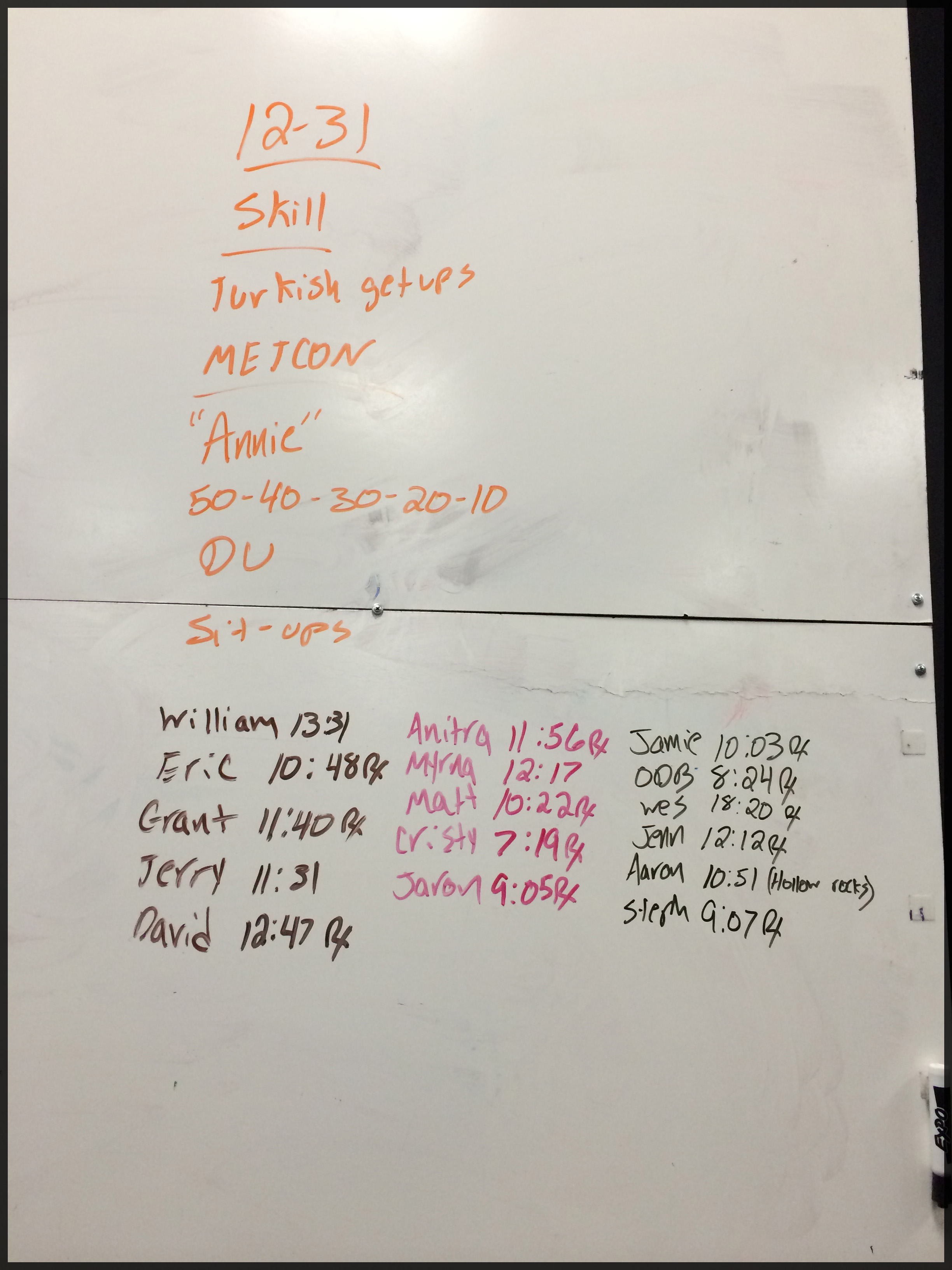 I felt like Annie was a good way to finish the year. And a good benchmark for me to retest in a couple of months. With clean eating and hopefully some weight loss, I hope to destroy my 7:58 time from April 2013!