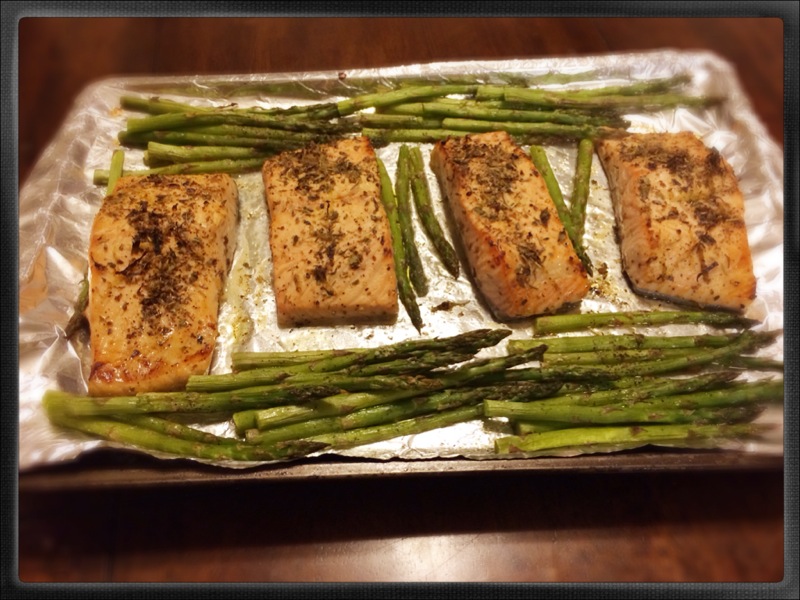 In between reheating and trying to create a masterpiece, I cooked up the Salmon for the Herbes de Provence-Crusted Salmon with a Citrus-Herb Sauce and Asparagus in Weeknight Paleo. Besides the “juicing” of the citrus fruit, this was quick and easy. Maybe 20 minutes from start to finish. Seriously EASY and QUICK and kind of fancy looking! So yummy!