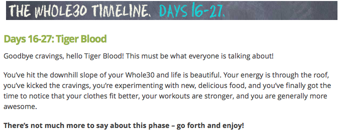 yay for more than 1/2 way through! I can’t wait to get a taste of that tiger blood! hehe.. I suspect I’m not having enough healthy fat.. need to start adding avocado to my meals… or coconut.. OH squats scare me.. that tempo sounds nasty.. hehe.. great job!