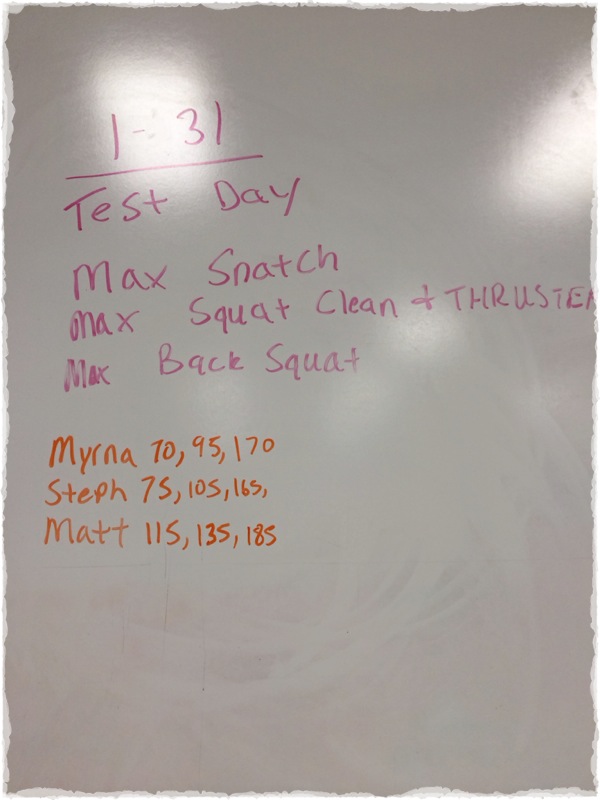 Test Day BOOM Total: Snatch, Squat Clean Thruster,  Back Squat ADD Total weight!