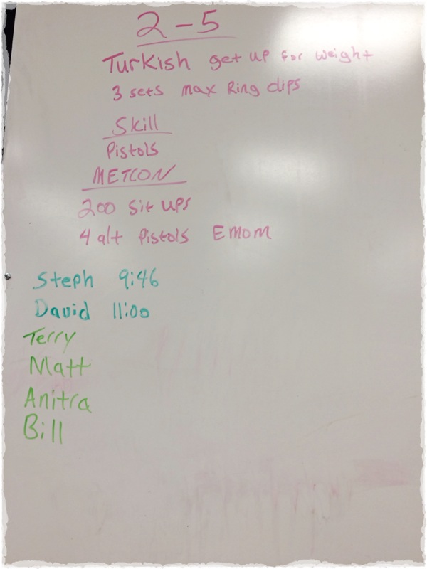 A couple of weeks ago we did a MetCon with TGU and my wrist couldn’t handle the kettle bell. Today I could at least do the 25lb KB. I didn’t try pushing more because the good ol’ wrist is a little worn out and I want it to heal up, not get worse!