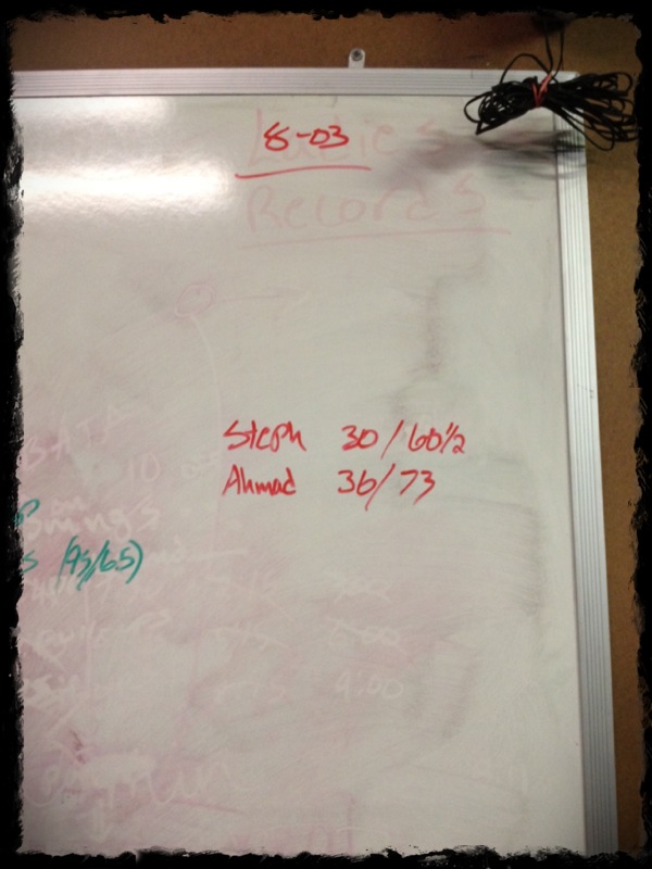 8/3/12 WOD – Coach didn’t write the agenda for the day but he wrote our results at least!