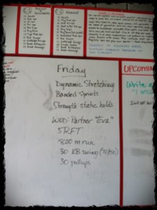 So I’m a little more flexible at the end of the day than I am at 5 am. So Wall Balls although brutal aren’t as bad on the hips in the P.M. My shoulders were not too happy with me in general but I got the job done better than I have been in the past. It’s the damn Pull Ups that still get me! Time 7:02