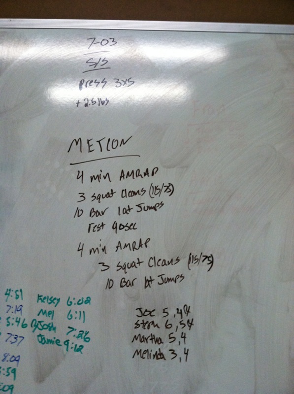 MetCon: 10-9-8-7-6-5-4-3-2-1 Front Squat (185,135) 5-10-15-20-25-30-35-40-45-50 Lateral bar jumps