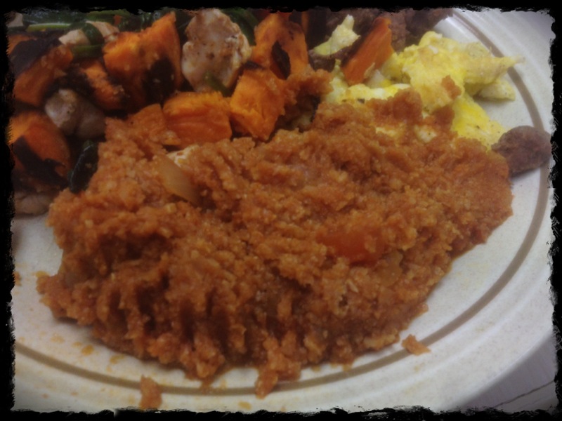 I only cooked ahead for tonight because we will be busy and I won’t have time to “make” anything. Reheat I can do and that’s easy. And that’s where the Matchsticks came in. It called for radishes, jicama, fuji apple, bosc pear and carrots to all be cut into matchsticks. Ay ay ay! While I was cutting that up, I was heating up a modified schezuan sauce. The recipe called for things that I could not find without sugar and honey which is not Whole30. So I just eliminated and hoped for the best! After my sauce cooled, I tossed it in with the matchstick salad. As that was all marinating, I heated up a skillet with Coconut Oil. I took chicken tenderloins and coated them in Chines Five Spice (which I’ve never used and wasn’t sure I’d like by the smell of it) and a few other spices. And off to the skillet they went. After a few minutes of cooking I added grassfed butter and lemon juice and let the tenderloins finish cooking. Plated the matchstick salad and topped with the chicken and it was fabulous. I ate half a serving of that and half a serving of my salmon. Turns out I was right about the smell of the Chinese Five Spice because it had anise, fennel and cloves, bleh. Not my favorite spices, but all together with the butter lemon sauce it turned out rather tasty. And maybe in my past experiences the flavors were too potent for my tastebuds back in the day. Ugh I’m getting old!