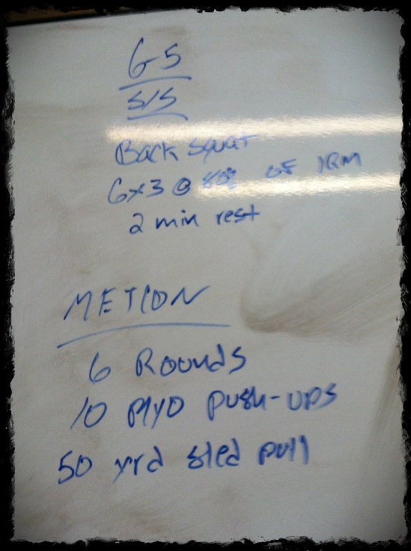 Skill/Strength: Sled Pull 5 x 50ft 90lbs/45lbs